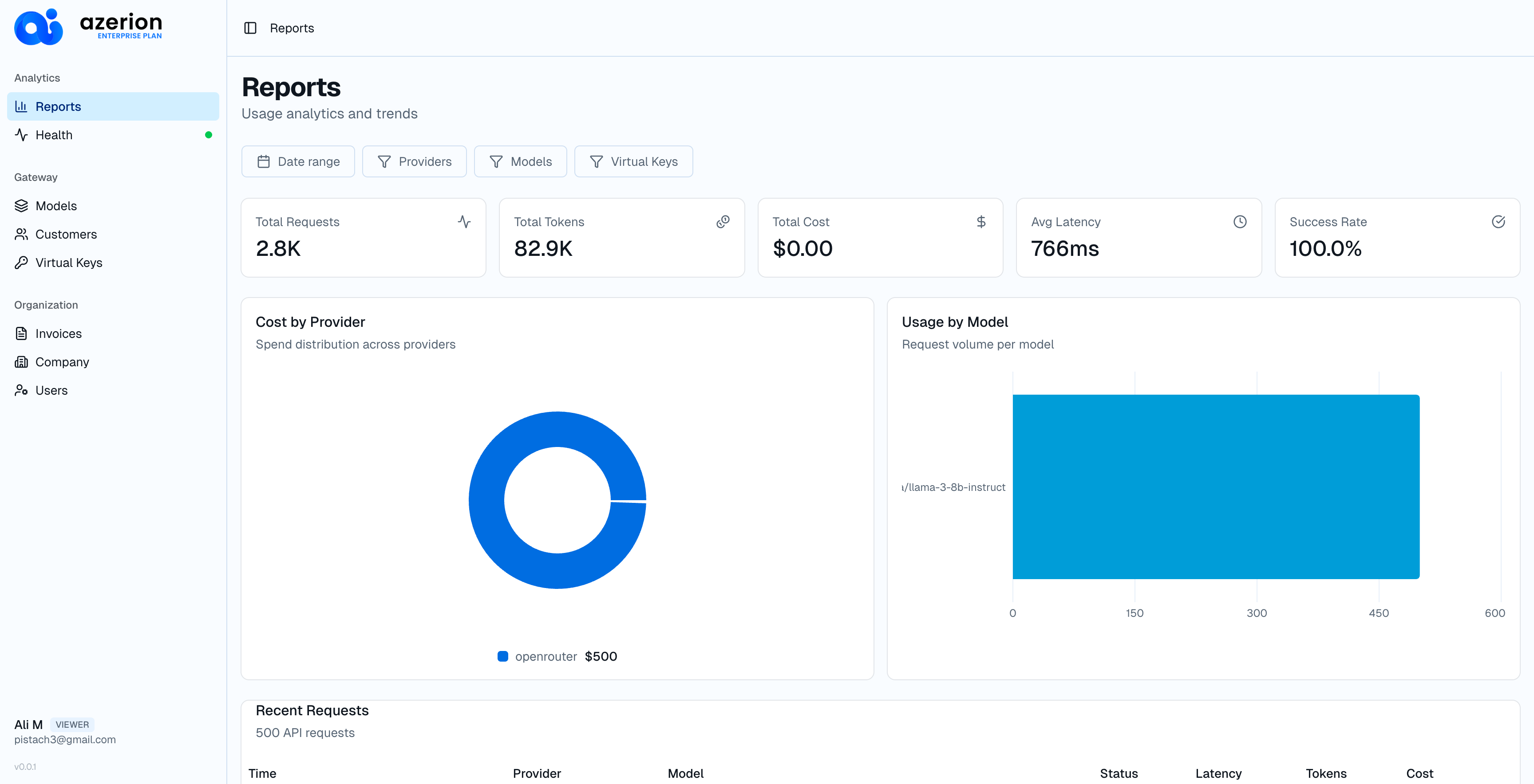 Every request. Every token. Every euro. Full visibility across all clients and providers.